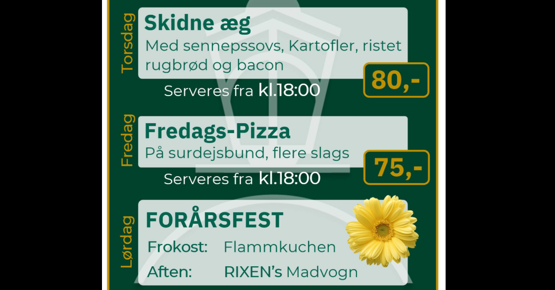 Vi vil kraftigt opfordre til at melde jer til quiz og forudbestille dagens ret i god tid.